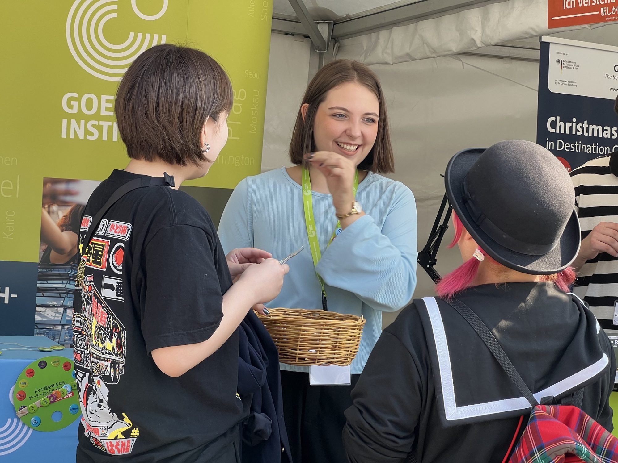 ゲーテ・インスティトゥート東京は今年もブースを出展し、スタッフとの交流の場や、ゲーテ・インスティトゥートの活動紹介、そして多様なドイツのカルチャーシーンについてよりよく知っていただく機会を提供いたします。ご質問やご相談などもお待ちしています。もちろん「ちょっと見に行く」も大歓迎です! ワークショップテントではドイツ語ミニレッスンを開催します。ゲーテ・インスティトゥートのプロの講師のサポートのもと、生のドイツ語を学びドイツ語の世界に足を踏み入れてみませんか?※開催日程は後日公開予定 ※ドイツ語ミニレッスンは席に限りがあるため、予約制です。参加ご希望の方は、事前にゲーテ・インスティトゥートのブースでご予約ください。 会場で皆様にお会いできることを楽しみにしています! |