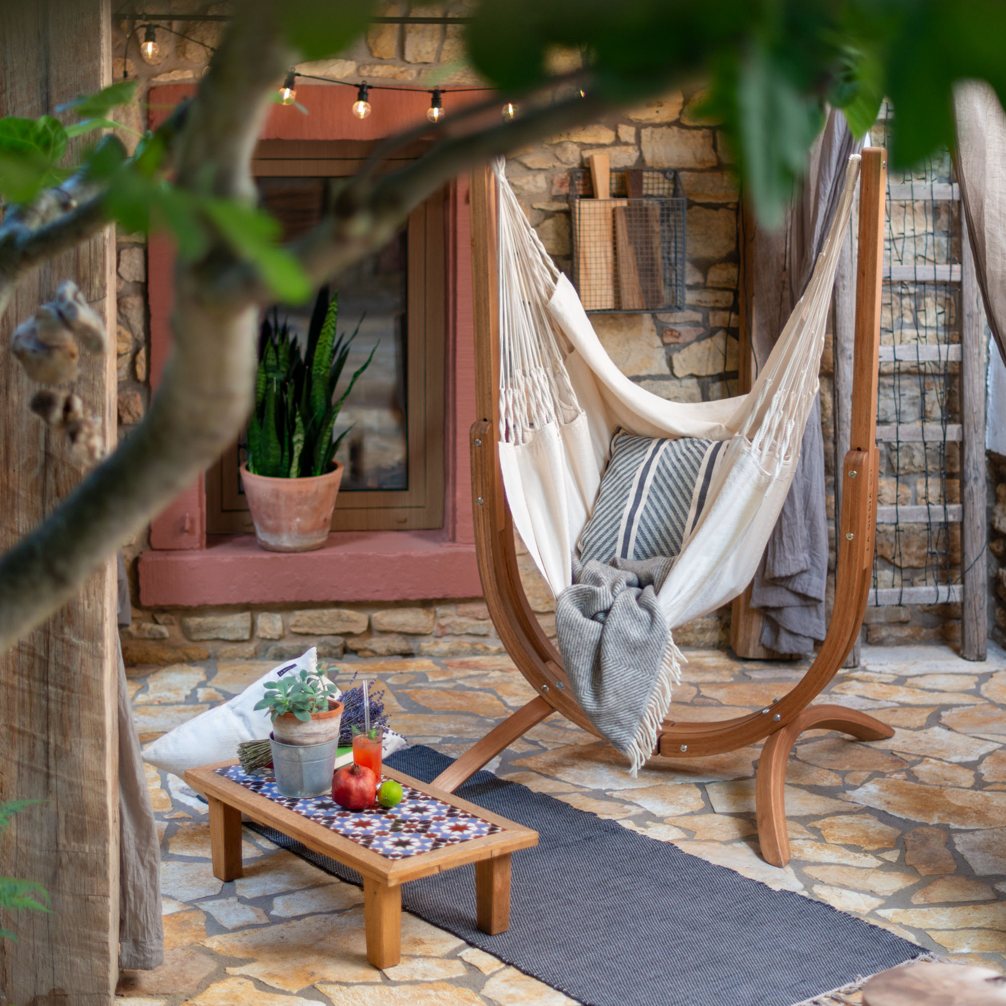 ドイツのハンモックメーカー、LA SIESTA(ラ・シエスタ)は1991年に創業し、現在では世界50か国以上で愛用されています。品質や乗り心地へのこだわりはもちろん、環境にも人にも優しいサステナブルなハンモックを提供しています。今回のイベントでは、チェアと木製のU字スタンドがセットになった「ウディネ」を展示・販売いたします。無重力状態で、優しい生地に包まれ、ほっと一息。心地よいリラックスタイムをお届けします。ぜひ体験しにお越しください。