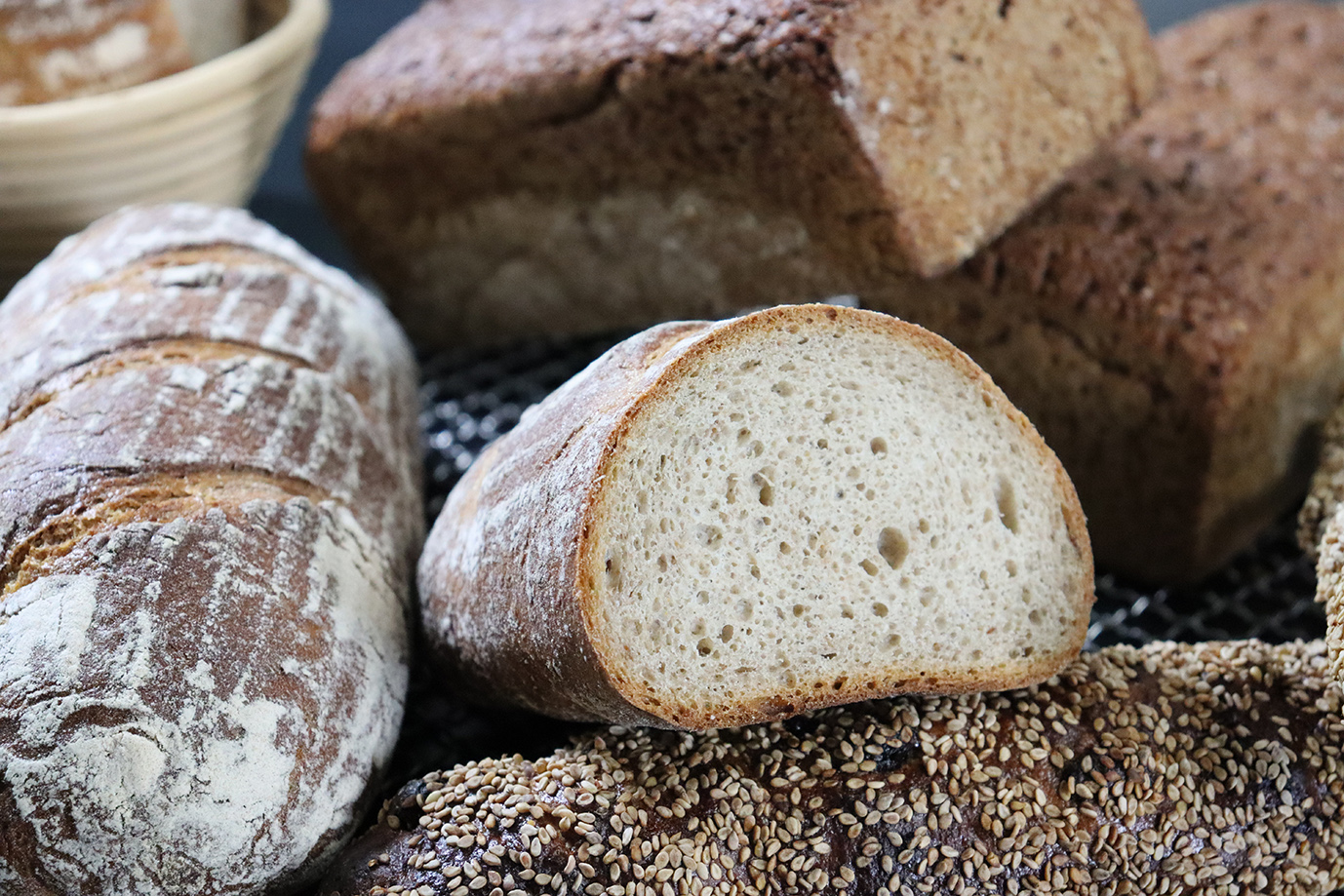 「Drei Bäckerinnen 」では3人の作り手がドイツで学んだ知識と技術をもとに今年もパワーアップしたライ麦パンや小麦パンを販売致します。自家培養発酵種を使った本格的なライ麦パンから日本人の好みに合わせたアレンジパンまで様々なドイツパンをお楽しみください。 今年も宜しくお願い申し上げます。 (パンと薬膳教室lapain、aruhi_tomomi_okamoto、fujiyobrot) |