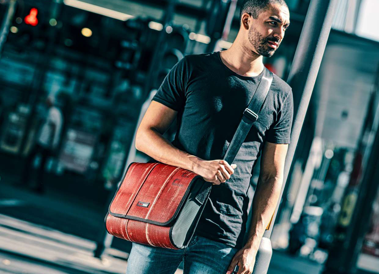 ドイツの消火ホースをリサイクルしたアップサイクルブランド「フォイヤーウェア」。使命を全うしたホースはフォイヤーウェアが引き取り、丁寧に洗浄し、裁断、ほぼ手作業でバックや小物等を作り上げ、新しい価値とスタイルを生み出した。